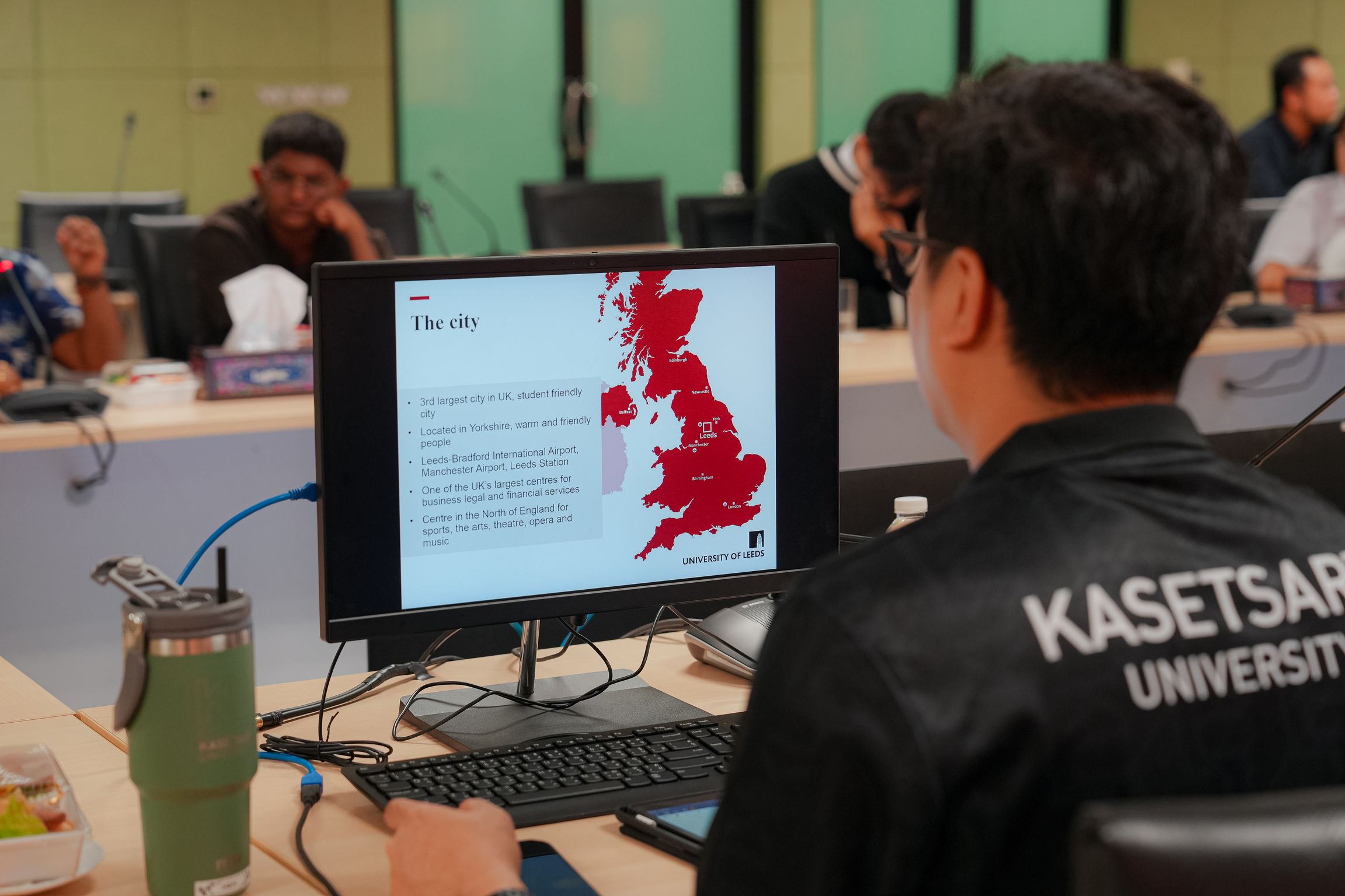 เมื่อวันจันทร์ที่ 8 ธันวาคม 2568 ผู้ช่วยศาสตราจารย์ ดร.พจมาน พูลมี ผู้ช่วยอธิการบดีฝ่ายการศึกษาและการเรียนรู้ตลอดชีวิต วิทยาเขตกำแพงแสน พร้อมด้วยผู้แทนจากมหาวิทยาลัยลีด ประเทศอังกฤษ ได้แก่ ผู้อำนวยการประจำภูมิภาคเอเชียตะวันออกเฉียงใต้ของมหาวิทยาลัยลีด (SEA Regional Director, University of Leeds, UK) ตลอดจนผู้อำนวยการกองบริหารการศึกษา นายสมเกียรติ ไทยปรีชา และคณาจารย์ นิสิตจากมหาวิทยาลัยเกษตรศาสตร์ วิทยาเขตกำแพงแสน เข้าร่วมการประชุมหารือเพื่อสร้างความร่วมมือทางด้านการศึกษา การวิจัย และการแลกเปลี่ยนนิสิตและบุคลากร