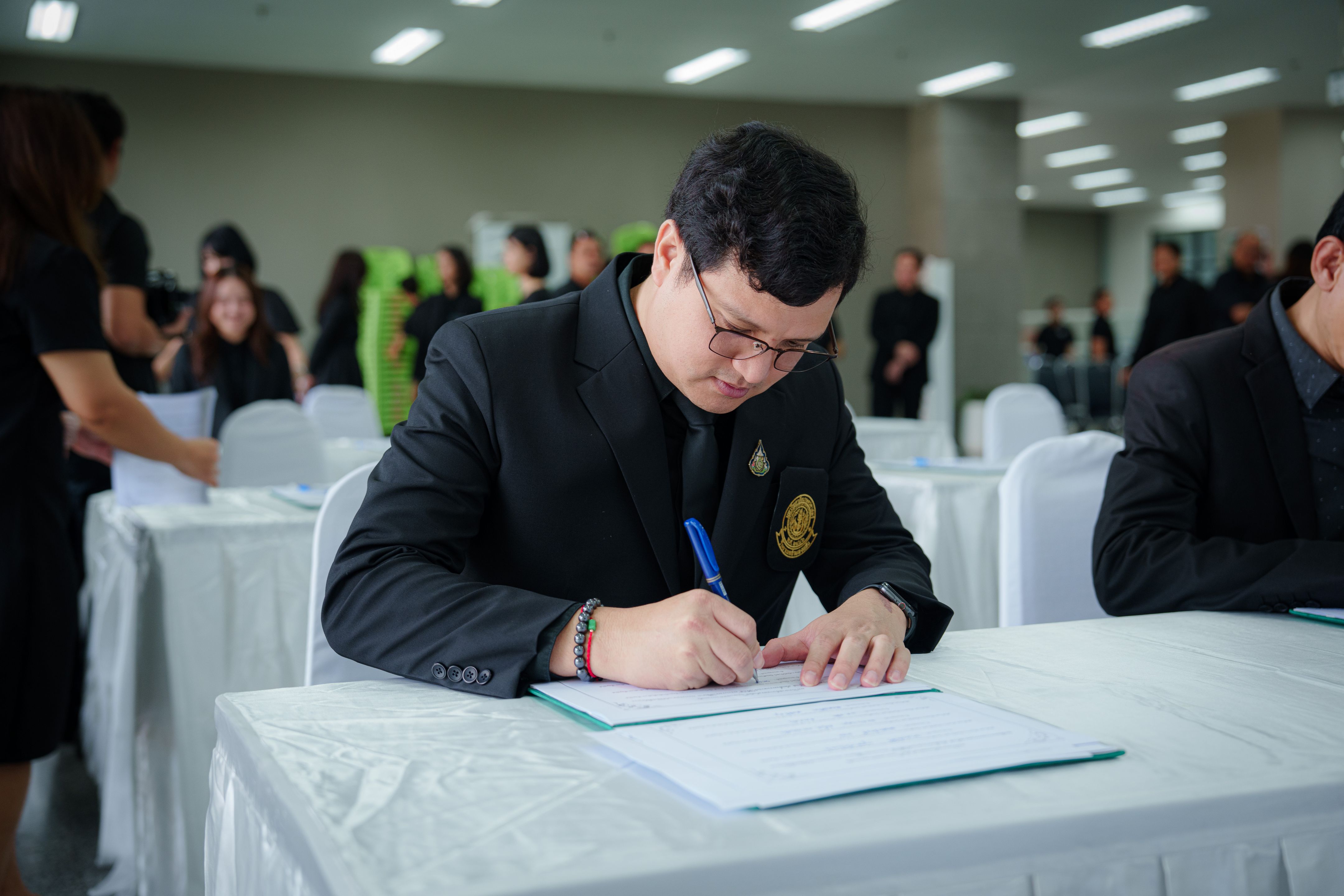 ภายในพิธีมีคณะผู้บริหารส่วนงาน คณาจารย์ บุคลากร และนิสิต ร่วมกันแสดงความอาลัยด้วยความสำนึกในพระมหากรุณาธิคุณอันหาที่สุดมิได้ โดยพร้อมใจกันยืนสงบนิ่งและลงนามถวายความอาลัย