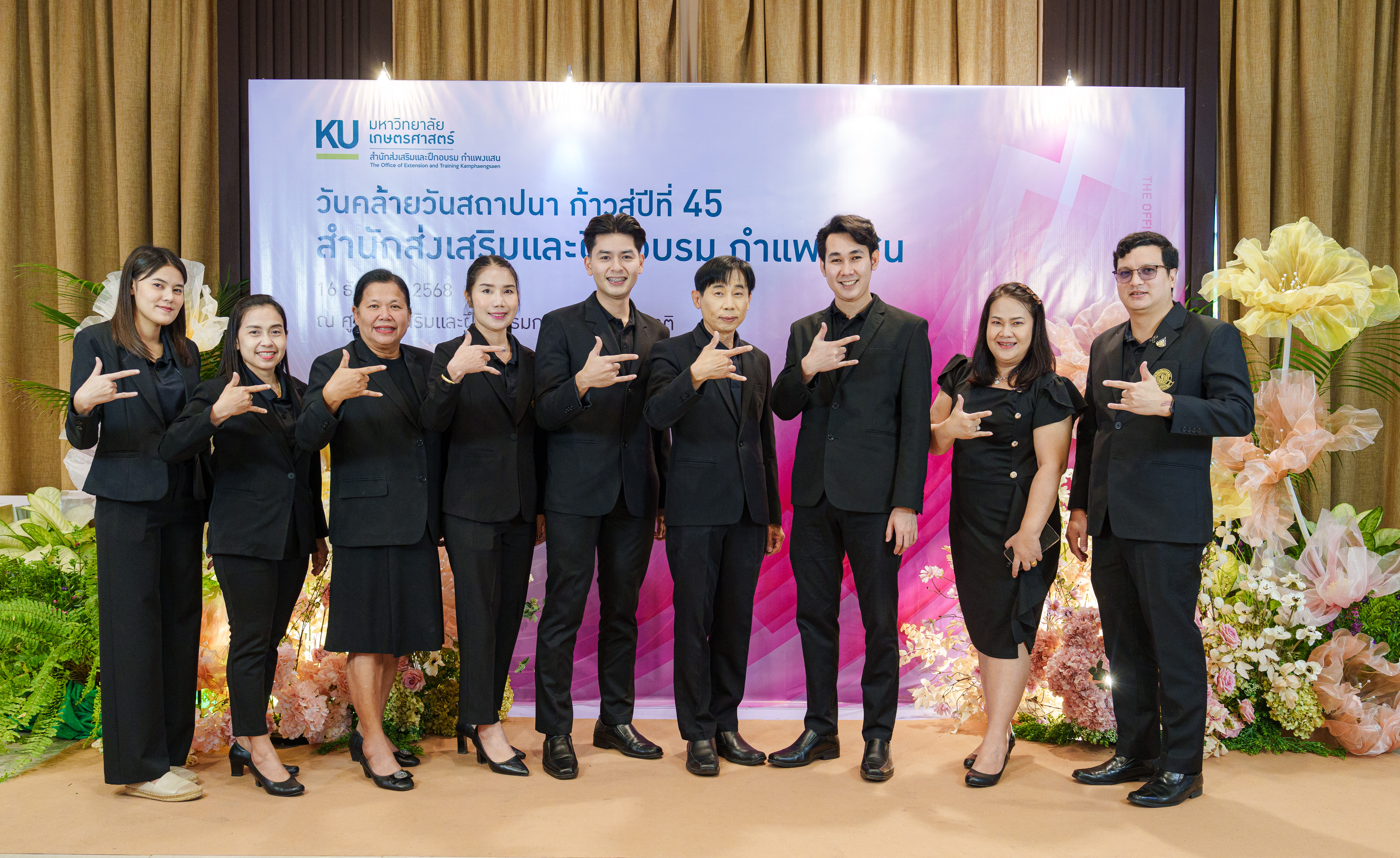 เมื่อวันอังคารที่ 16 ธันวาคม 2568 ผู้ช่วยศาสตราจารย์ ดร.พจมาน พูลมี ผู้ช่วยอธิการบดีฝ่ายการศึกษาและการเรียนรู้ตลอดชีวิต วิทยาเขตกำแพงแสน พร้อมด้วยนายสมเกียรติ ไทยปรีชา ผู้อำนวยการกองบริหารการศึกษา และบุคลากรกองบริหารการศึกษา ร่วมแสดงความยินดีกับสำนักส่งเสริมและฝึกอบรม กำแพงแสน เนื่องในโอกาสวันคล้ายวันสถาปนาสำนักส่งเสริมและฝึกอบรม กำแพงแสน และศูนย์ส่งเสริมและฝึกอบรมการเกษตรแห่งชาติ ครบรอบ 44 ปี